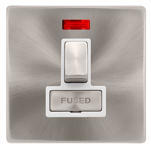 Click Definity Complete 13A Ingot Switched Fused Connection Unit With Neon – Brushed Steel Cover Plate – Polar White Insert