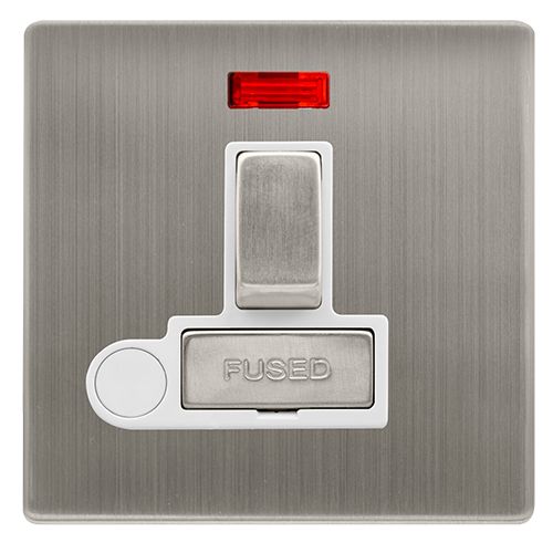 Click Definity Complete 13A Ingot Switched Fused Connection Unit With Neon & Optional Flex Outlet – Stainless Steel Cover Plate – Polar White Insert