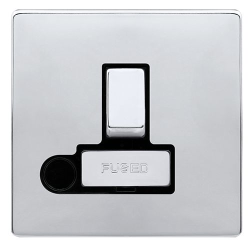 CLICK DEFINITY COMPLETE 13A INGOT SWITCHED FUSED CONNECTION UNIT WITH OPTIONAL FLEX OUTLET – POLISHED CHROME COVER PLATE – BLACK INSERT