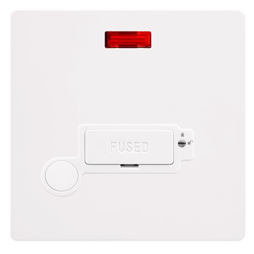 Click Definity Complete 13A Lockable Connection Unit With Neon & Optional Flex Outlet – Metal White Cover Plate – Polar White Insert