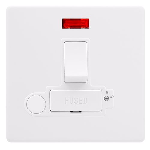 Click Definity Complete 13A Switched Lockable Connection Unit With Neon & Optional Flex Outlet – Polar White Cover Plate – Polar White Insert