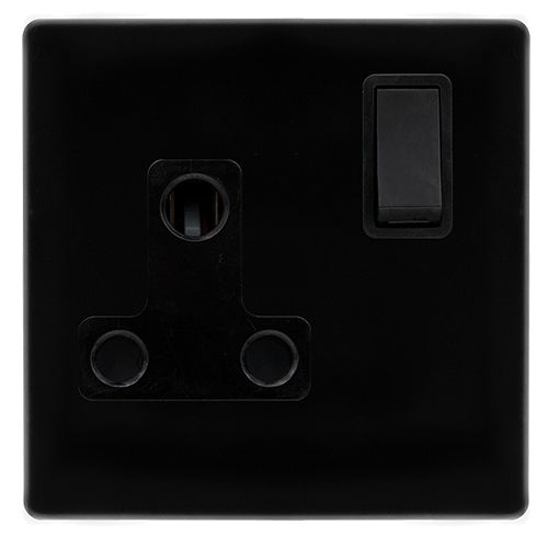 Click Definity Complete 15a Round Pin Switched Socket – Metal Black Cover Plate – Black Insert