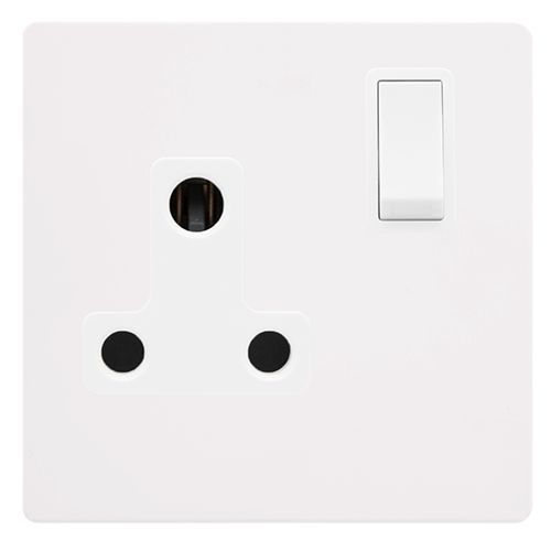 Click Definity Complete 15a Round Pin Switched Socket – Metal White Cover Plate – Polar White Insert