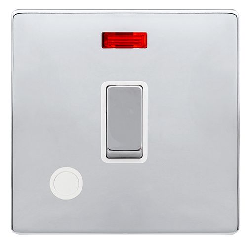Click Definity Complete 20A Ingot Double Pole Switch With Neon & Flex Outlet – Polished Chrome Cover Plate – Polar White Insert