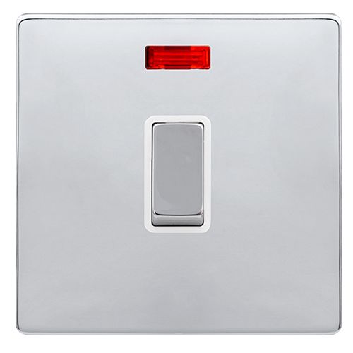 Click Definity Complete 20A Ingot Double Pole Switch With Neon – Polished Chrome Cover Plate – Polar White Insert