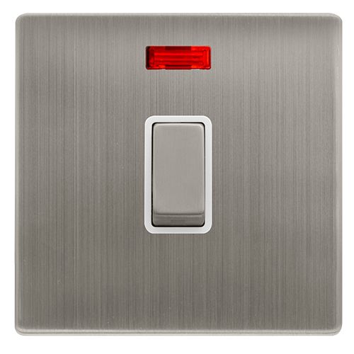Click Definity Complete 20A Ingot Double Pole Switch With Neon – Stainless Steel Cover Plate – Polar White Insert