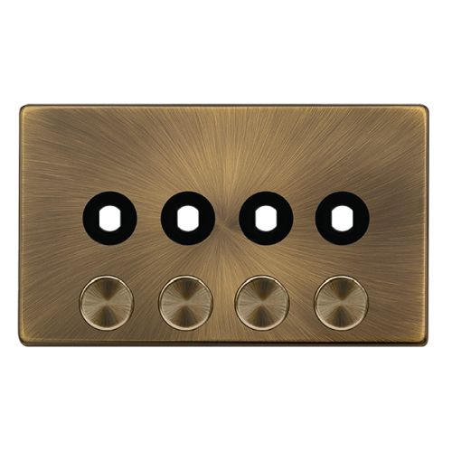 Click Definity Complete 4 Gang Unfurnished Dimmer Plate & Knobs – Antique Brass