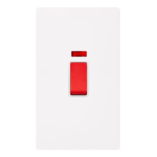 CLICK DEFINITY COMPLETE 50A 2 GANG DOUBLE POLE SWITCH WITH NEON – METAL WHITE COVER PLATE – POLAR WHITE INSERT