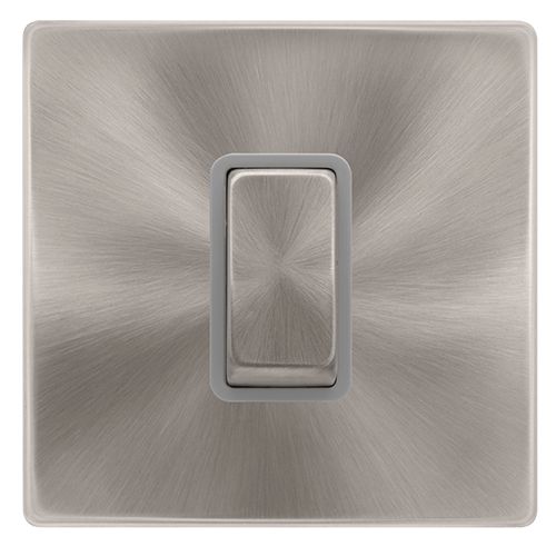 Click Definity Complete 50a Ingot 1 Gang Double Pole Switch – Brushed Steel Cover Plate – Grey Insert