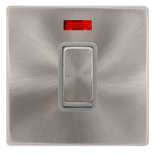 Click Definity Complete 50a Ingot 1 Gang Double Pole Switch With Neon – Brushed Steel Cover Plate – Grey Insert