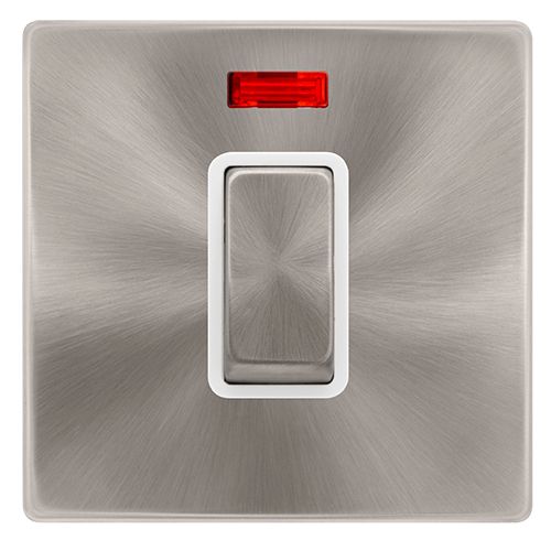 Click Definity Complete 50a Ingot 1 Gang Double Pole Switch With Neon – Brushed Steel Cover Plate – Polar White Insert