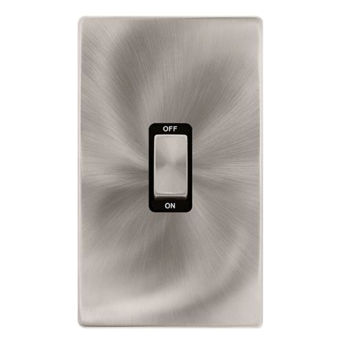 Click Definity Complete 50a Ingot 2 Gang Double Pole Switch – Brushed Steel Cover Plate – Black Insert