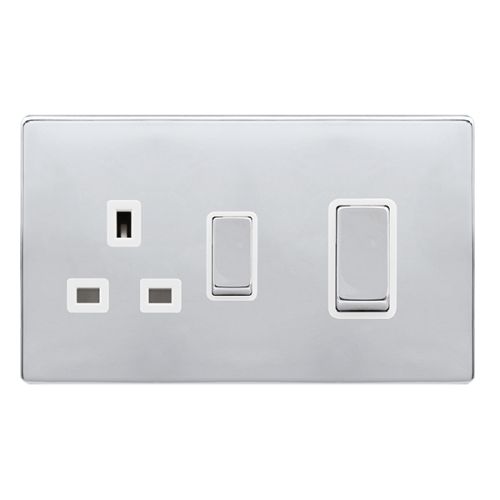 Click Definity Complete 50a Ingot Double Pole Switch With 13A Double Pole Switched Socket – Polished Chrome Cover Plate – Polar White Insert