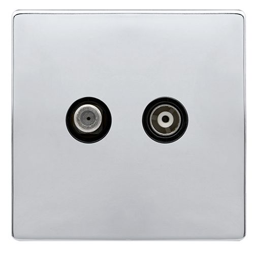 Click Definity Complete Isolated Satellite & Isolated Coaxial Outlet- Polished Chrome Cover Plate – Black Insert