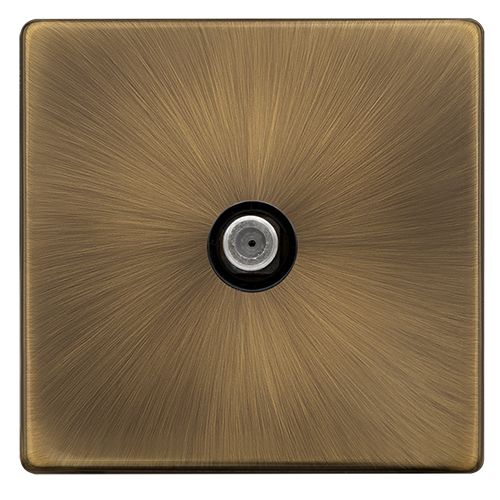 CLICK DEFINITY COMPLETE NON-ISOLATED SINGLE SATELLITE OUTLET – ANTIQUE BRASS COVER PLATE – BLACK INSERT