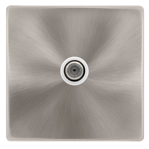 CLICK DEFINITY COMPLETE NON-ISOLATED SINGLE SATELLITE OUTLET – BRUSHED STEEL COVER PLATE – POLAR WHITE INSERT
