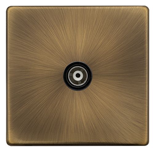 CLICK DEFINITY COMPLETE SINGLE ISOLATED COAXIAL OUTLET – ANTIQUE BRASS COVER PLATE – BLACK INSERT