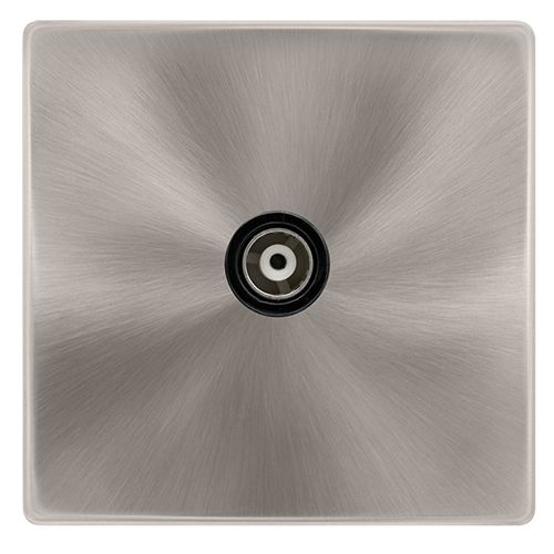 CLICK DEFINITY COMPLETE SINGLE ISOLATED COAXIAL OUTLET – BRUSHED STEEL COVER PLATE – BLACK INSERT