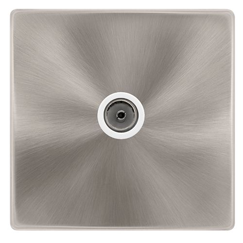 CLICK DEFINITY COMPLETE SINGLE NON-ISOLATED COAXIAL OUTLET – BRUSHED STEEL COVER PLATE – POLAR WHITE INSERT