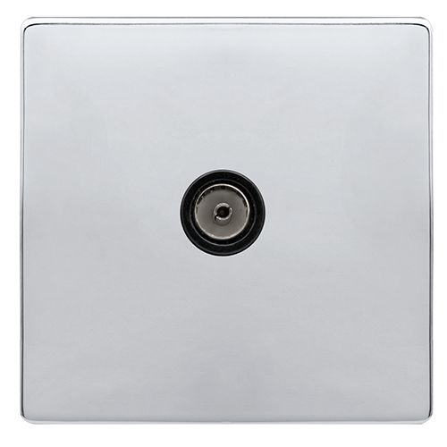 Click Definity Complete Single Non-Isolated Coaxial Outlet – Polished Chrome Cover Plate – Black Insert