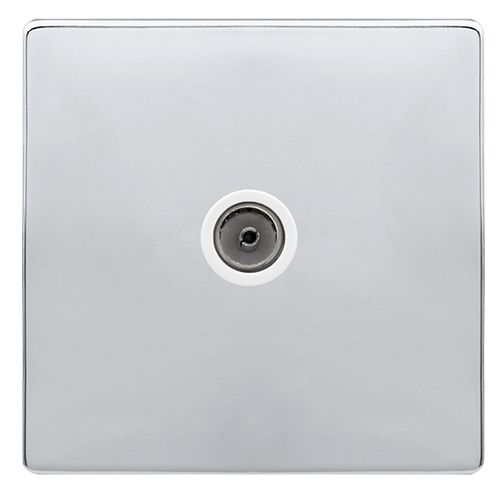 Click Definity Complete Single Non-Isolated Coaxial Outlet – Polished Chrome Cover Plate – Polar White Insert
