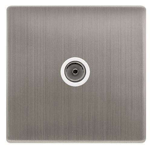 Click Definity Complete Single Non-Isolated Coaxial Outlet – Stainless Steel Cover Plate – Polar White Insert