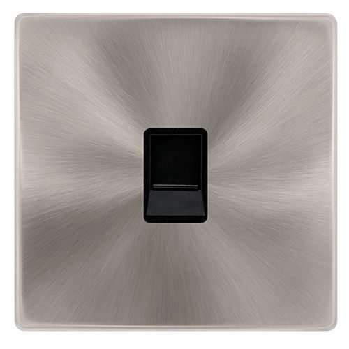 Click Definity Complete Single RJ11 (Irish/Us) Outlet – Brushed Steel Cover Plate – Black Insert