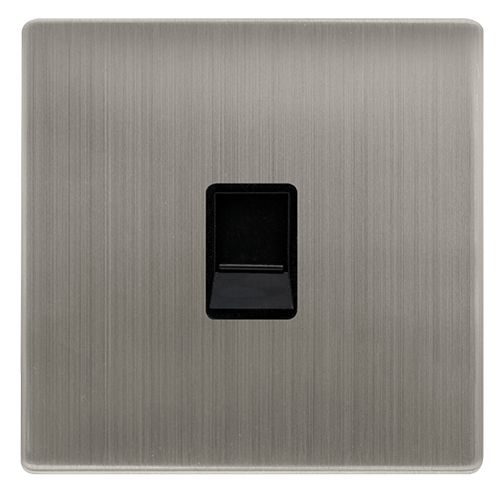 Click Definity Complete Single RJ11 (Irish/Us) Outlet – Stainless Steel Cover Plate – Black Insert