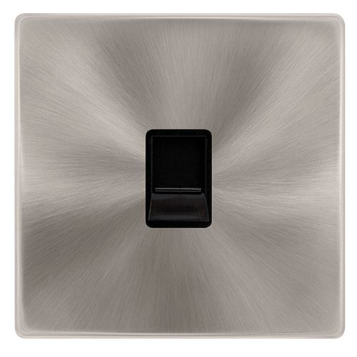 Click Definity Complete Single Telephone Master Outlet – Brushed Steel Cover Plate – Black Insert