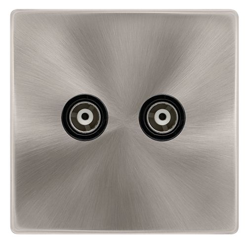 CLICK DEFINITY COMPLETE TWIN ISOLATED COAXIAL OUTLET – BRUSHED STEEL COVER PLATE – BLACK INSERT