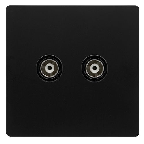 Click Definity Complete Twin Isolated Coaxial Outlet – Matt Black Cover Plate – Black Insert