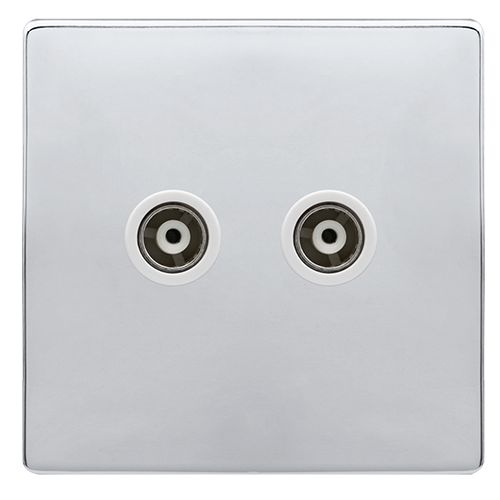 Click Definity Complete Twin Isolated Coaxial Outlet – Polished Chrome Cover Plate – Polar White Insert
