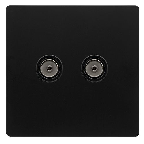 Click Definity Complete Twin Non-Isolated Coaxial Outlet – Matt Black Cover Plate – Black Insert