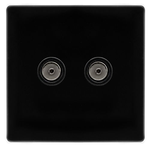 Click Definity Complete Twin Non-Isolated Coaxial Outlet – Metal Black Cover Plate – Black Insert