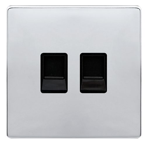 Click Definity Complete Twin Telephone Master Outlet – Polished Chrome Cover Plate – Black Insert