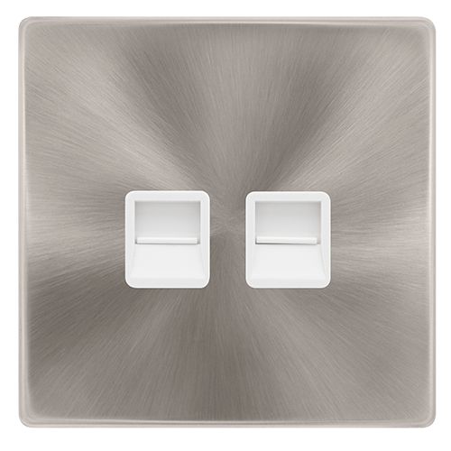 Click Definity Complete Twin Telephone Secondary Outlet – Brushed Steel Cover Plate – Polar White Insert