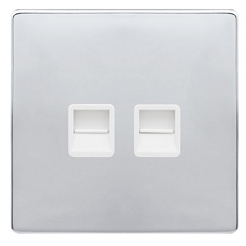 Click Definity Complete Twin Telephone Secondary Outlet – Polished Chrome Cover Plate – Polar White Insert