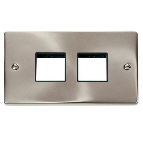 CLICK SATIN CHROME MINIGRID 4-MODULE 2+2 TWIN SWITCH PLATE (BLACK INS)