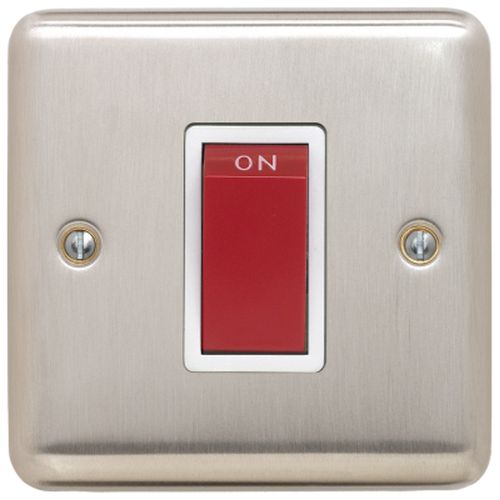 CONTACTUM 1G 45A BRUSHED STAINLESS STEEL (RED ROCKER WHITE INSERTS)