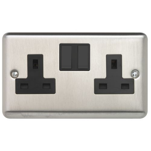 CONTACTUM REFLEX BRUSHED STEEL 2G SWITCHED SOCKET (B/S SWI,BLK INS)