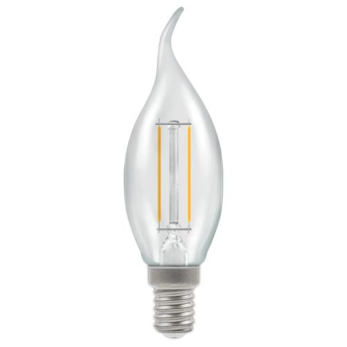 CROMPTON LED FILAMENT CANDLE BENT TIP CLEAR NON-DIMMABLE 2.2W 2700K WARM WHITE SES-E14