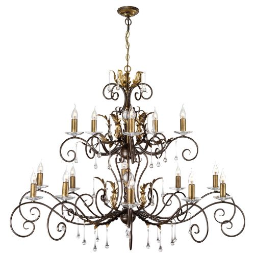 Designed and manufactured exclusively by Elstead, this handmade range features traditionally forged scrolls and antiqued oak leaves. Fittings are dressed in clear glass drops and cut glass sconces.