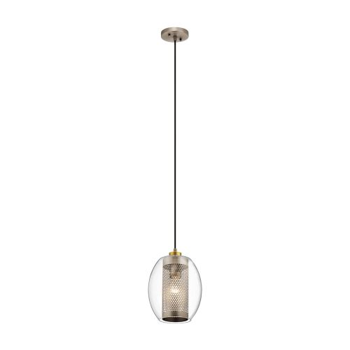 Industrial-inspired style, the Asher mini Pendant light in Antique Pewter, brings mixed materials of steel and glass together simply and with a retro feel. The perforated metal interior softly diffuses the light.