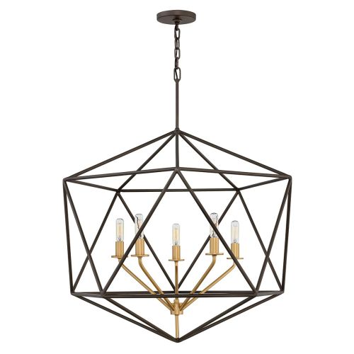 Sleek and chic, Astrid is designed as an airy geometric beauty balanced with robust welded construction. The larger pendants have an inner light cluster, uniquely wired from the bottom, which appears to float inside the outer cage. The two-tone finish further enhances the layering effect for added depth and dimension.