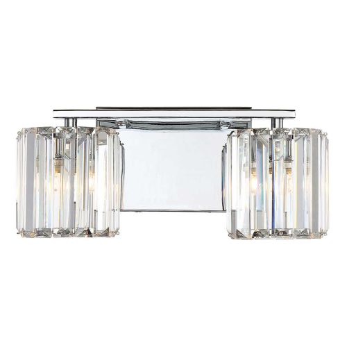The Divine 2lt Wall light, is exquisite sophistication, the simple backplate gleams in Polished Chrome and reflects every cut and sparkle of the crystal-glass. The refractive glass is arranged in slats pinned top and bottom to form a shade around the LED bulb. IP44 bathroom rated.