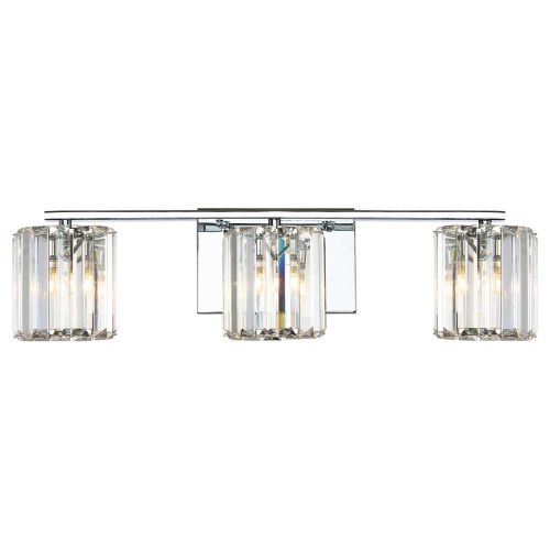 The Divine 3lt Wall light, is exquisite sophistication, the simple backplate gleams in Polished Chrome and reflects every cut and sparkle of the crystal-glass. The refractive glass is arranged in slats pinned top and bottom to form a shade around the LED bulb. IP44 bathroom rated.