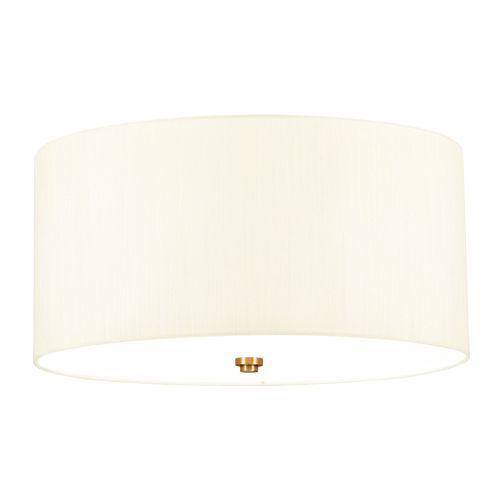 This flush ceiling fixture is available from stock with a faux silk Ivory shade. Choose from 6 different size options. There is a gloss white acrylic diffuser that is secured with a Polished Chrome or Aged Brass Central finial. See our shade catalogue for more shade colour options.