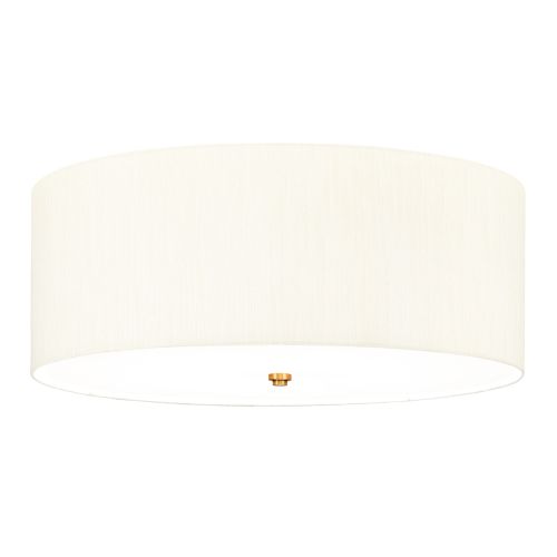 This flush ceiling fixture is available from stock with a faux silk Ivory shade. Choose from 6 different size options. There is a gloss white acrylic diffuser that is secured with a Polished Chrome or Aged Brass Central finial. See our shade catalogue for more shade colour options.