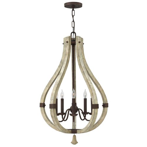 Middlefield’s rustic chic design captures a historical feel with its solid distressed wood and steel construction. A pear-shaped wood finial adds an additional elegant detail and may be hung inside or outside the frame.