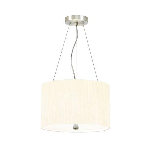 This pendant with suspension wires is available in stock with a faux silk Ivory shade. Choose from 6 different size options with either a Polished Chrome or Aged Brass Ceiling pan and finial. A gloss white acrylic bottom diffuser is included. See our shade catalogue for more shade colours and customised option.